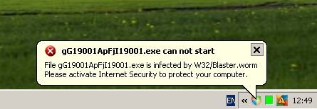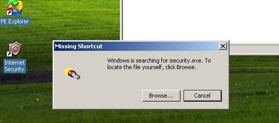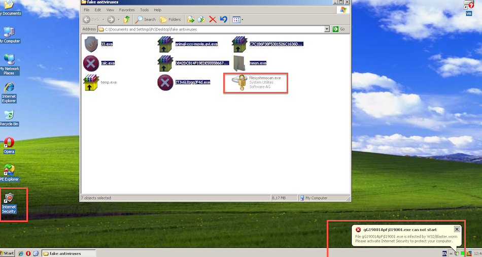 After another few minutes, and an Internet Security malware window appeared but disappeared soon after. In addition, the 'Internet Security' icon appeared on the desktop and a system tray icon of the same name, reporting that some other fake antivirus sample could not be executed since it was infected. Perhaps the first time this rogue program reported the truth!