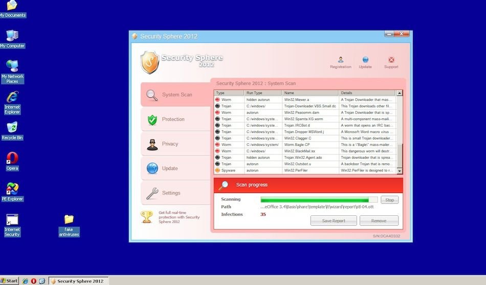 When my old PC was trying to boot Windows again, I wondered why none of the fake antiviruses had appeared. When I heard the Windows start-up sound and observed that my desktop background had been changed to a solid blue color, I realized there was hope. Despite my reservations, we would have a winner of the Fake Antivirus Competition! And sure enough, Security Sphere 2012 appeared - scanning my PC and displaying fake errors. Finally, the test was successful, and I can confirm that the scariest and 'best' phony antivirus program is... Security Sphere 2012!