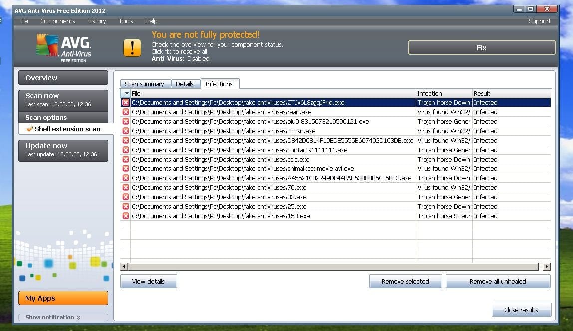Before starting the test, I scanned all samples with AVG Antivirus Free Edition. One fake antivirus was not detected by AVG, despite ensuring AVG was running with the latest updates.