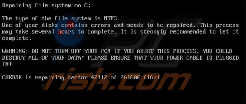 One of your disks contains errors and needs to be repaired. This process may take several hours to complete. It is strongly recommended to let it complete.