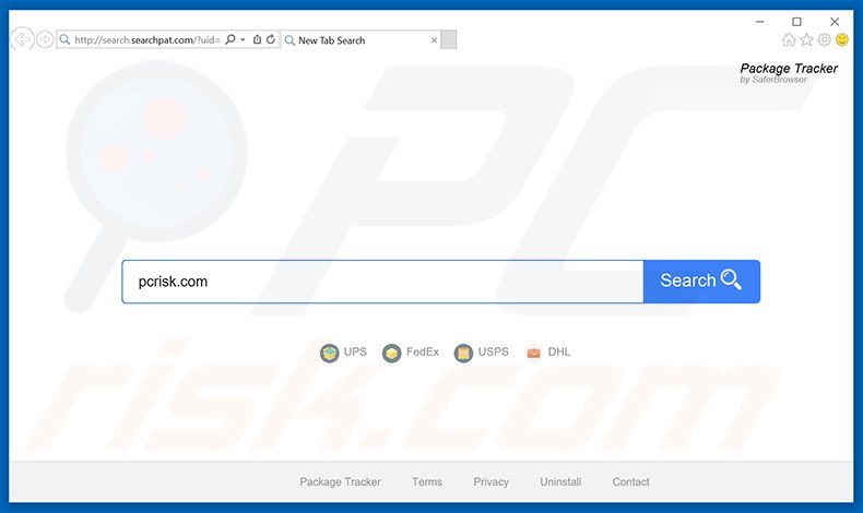 After system infiltration, Package Tracker assigns the Internet Explorer, Google Chrome, and Mozilla Firefox new tab URL, homepage, and default search engine browser settings to search.searchpat.com. In addition, Package Tracker reassigns these settings when user-attempts are made to change them.