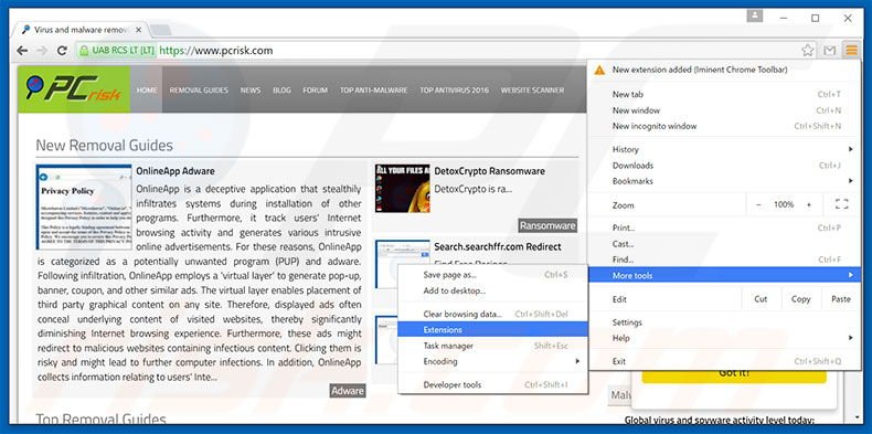 Remove malicious extensions from Google Chrome: