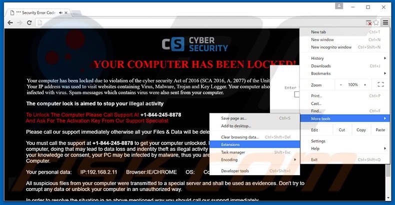| Fake Claim | Computer has been locked due to cyber security act violations. |