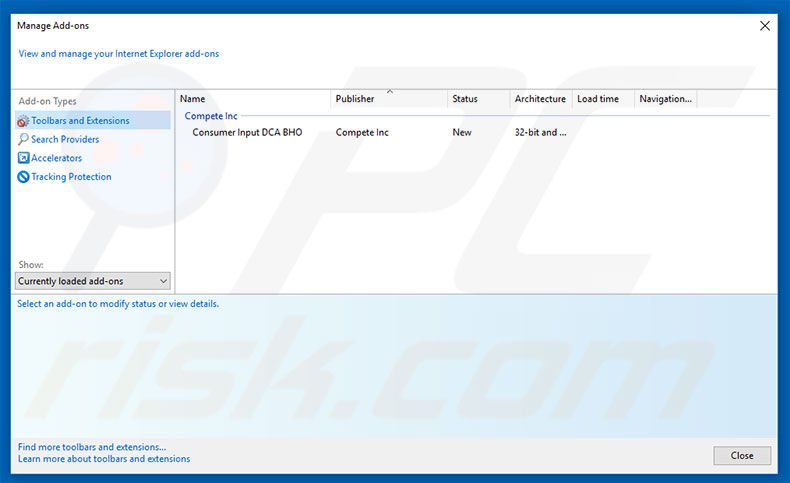 (at the top right corner of Internet Explorer), select "Manage Add-ons". Look for "ArcadeBayou", select this entry and click "Remove".