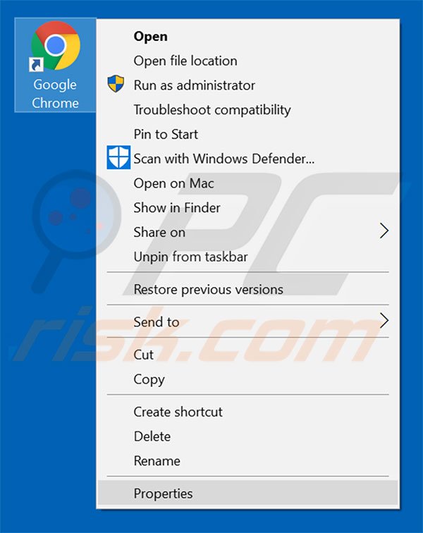 This browser hijacker modifies the "Target" field of the Google Chrome shortcut. To fix this, locate the shortcut on your Desktop and click the right mouse button over it. In the opened menu, choose "Properties". In the opened window, locate the Target field and eliminate all text (hxxp://www.hihikal.ru/...), which is entered after "C:\Program Files\Google\Chrome\Application\chrome.exe"