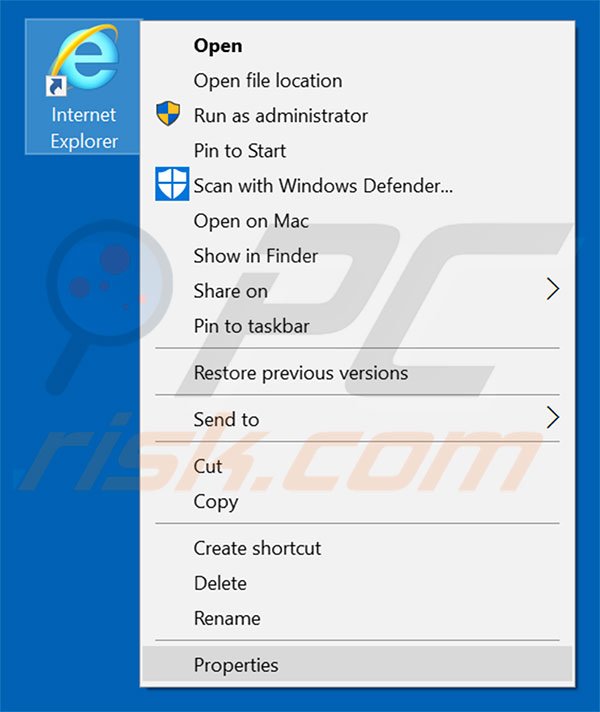 This browser hijacker changes the "Target" field of the Internet Explorer shortcut. To fix this, locate the shortcut on your Desktop and click the right mouse button over it. In the opened menu, choose "Properties". In the opened window, locate the Target field and eliminate text (hxxp://www.hihikal.ru/...), which is entered after "C:\Program Files\Internet Explorer\iexplore.exe".
