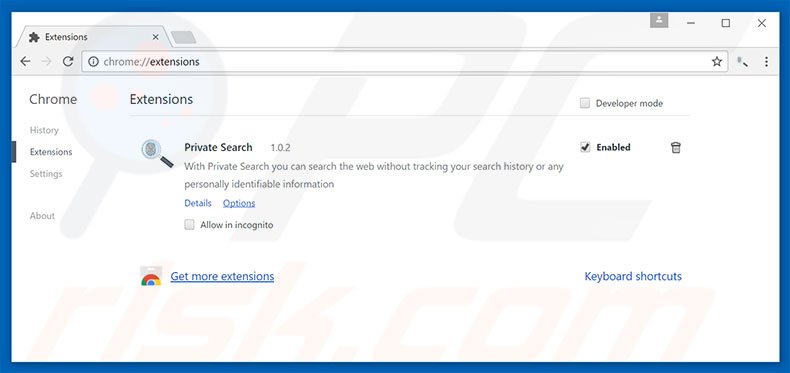Remove malicious extensions from Google Chrome: