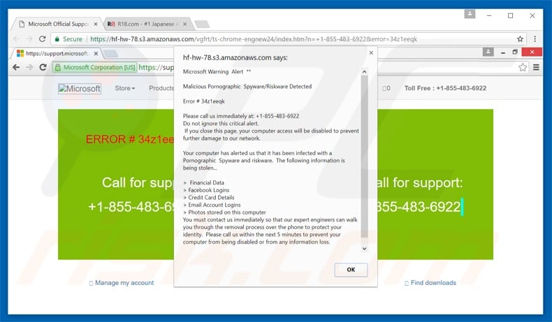 They are then supposedly guided through the removal process. Bear in mind, however, that the "Malicious Pornographic Spyware/Riskware Detected" error is fake. Criminals attempt to scare and trick victims into calling and paying for services that are not required. Therefore, you should never call the aforementioned telephone number.