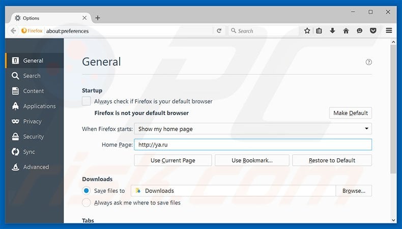 - STEP 4. Remove ya.ru homepage and default search engine from Mozilla Firefox.