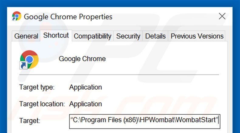 Furthermore, HPWombat assigns the targets of browser shortcuts to "C:\Program Files (x86)\HPWombat\WombatStart". For these reasons, users continually encounter unwanted redirects to one of the aforementioned websites. These redirects significantly diminish the browsing experience.