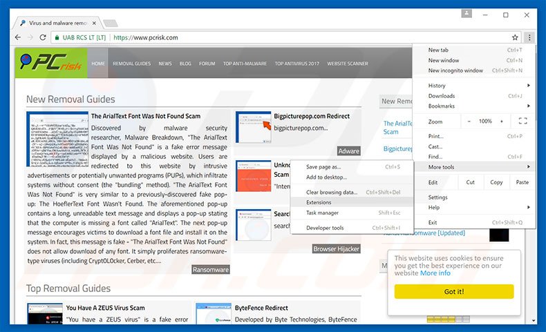 Remove malicious extensions from Google Chrome: