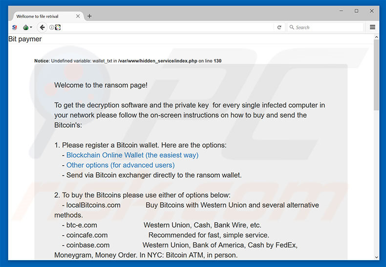 The message informs victims of the encryption and states that they must pay a ransom in exchange for a private key and decryption tool. It is currently unknown which type of cryptography Bit paymer uses, however, in any case, decryption without a unique key is impossible. The key is stored on a remote server controlled by cyber criminals.