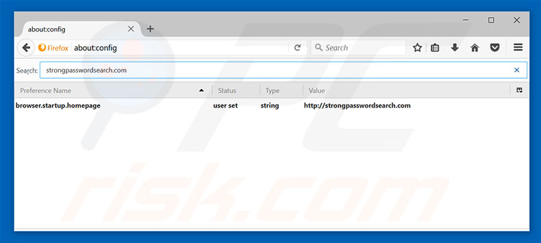 - STEP 4. Remove strongpasswordsearch.com homepage and default search engine from Mozilla Firefox.