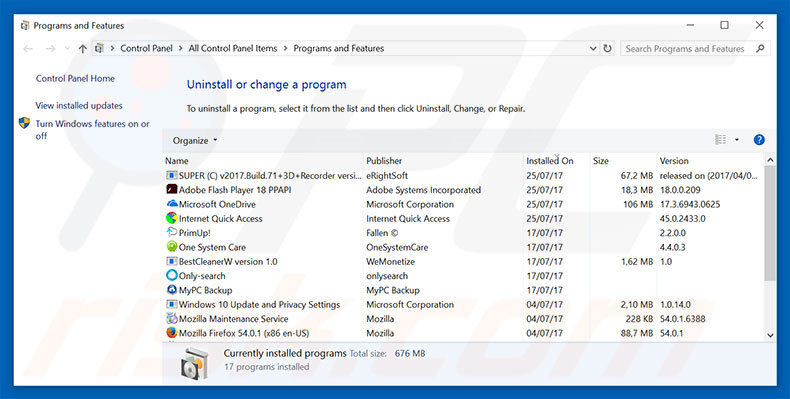 In the uninstall programs window, look for any potentially unwanted programs, select these entries and click "Uninstall" or "Remove".