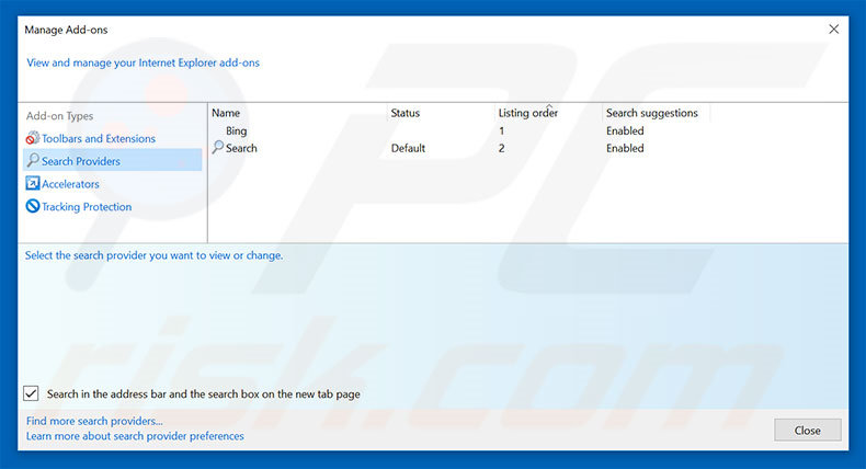 (at the top right corner of Internet Explorer), select "Manage Add-ons". In the opened window, select "Search Providers", set "Google", "Bing" or any other preferred search engine as your default, then remove "detectbest".