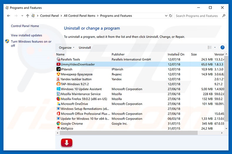 In the uninstall programs window, look for "UmmyVideoDownloader", select this entry and click "Uninstall" or "Remove".