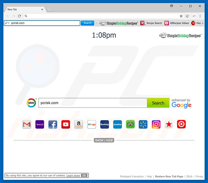 Judging on appearance alone, SimpleHolidayRecipes may seem legitimate and useful, however, it is categorized as a potentially unwanted application (PUA) and a browser hijacker. SimpleHolidayRecipes often infiltrates systems without users’ permission and promotes a dubious web search engine.