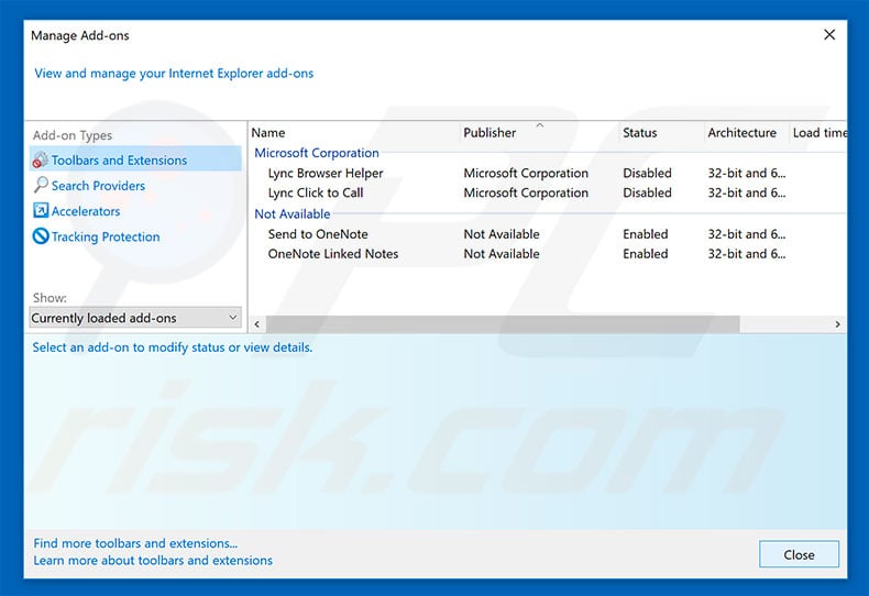 (at the top right corner of Internet Explorer), select "Manage Add-ons". Look for any recently installed suspicious extensions, select these entries and click "Remove".