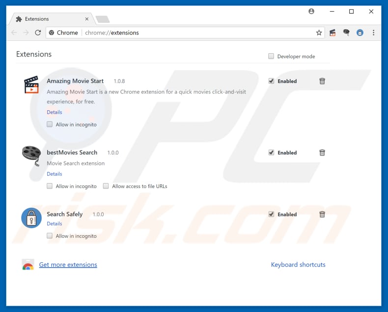 (at the top right corner of Google Chrome), select "More tools" and click "Extensions". Locate all recently-installed suspicious browser add-ons and remove them.