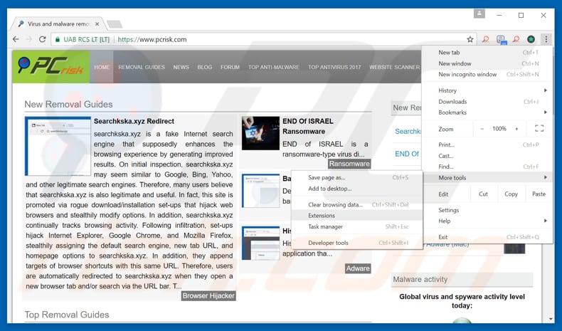 (at the top right corner of Google Chrome), select "More tools" and click "Extensions". Locate all recently-installed suspicious browser add-ons and remove them.