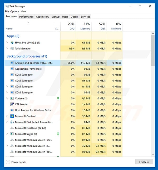 Spyware.PasswordStealer virus in Windows Task Manager: