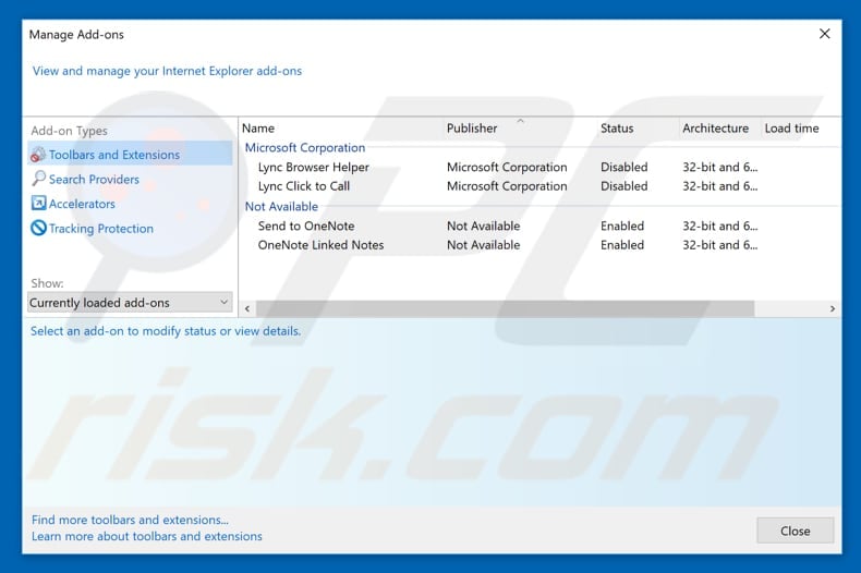 (at the top right corner of Internet Explorer), select "Manage Add-ons". Look for any recently installed suspicious extensions, select these entries and click "Remove".