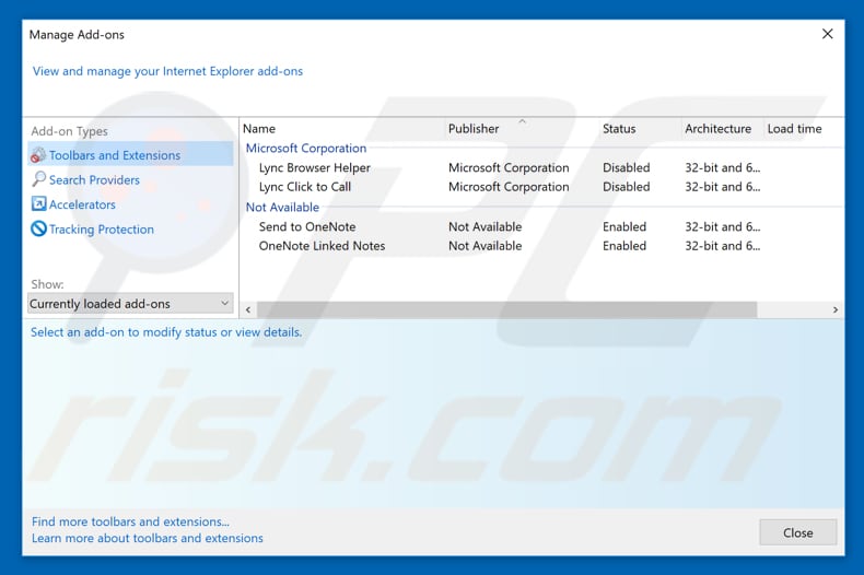(at the top right corner of Internet Explorer), select "Manage Add-ons". Look for any recently installed suspicious extensions, select these entries and click "Remove".