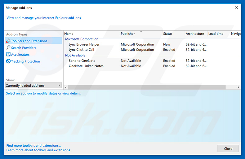 (at the top right corner of Internet Explorer), select "Manage Add-ons". Look for any recently-installed suspicious browser extensions, select these entries and click "Remove".