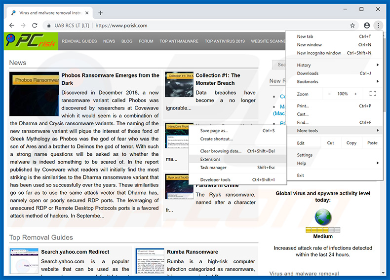 (at the top right corner of Google Chrome), select "More tools" and click "Extensions". Locate all recently-installed suspicious browser add-ons and remove them.