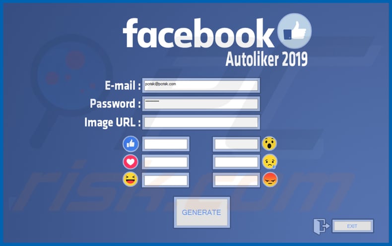 Scammers use "FaceBook Autoliker 2019" to trick people into providing personal details. In this particular example, the app asks to provide email addresses and passwords (Facebook account details). It also allows users to enter a link of a photo, which should receive their chosen number of 'likes'. This is a scam - "FaceBook Autoliker 2019" generates no likes or any other value.