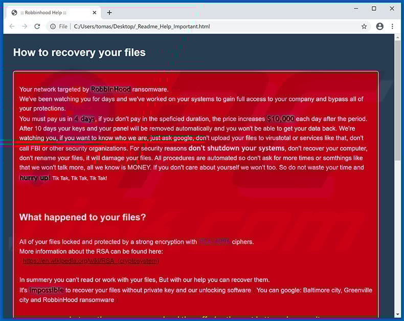 RansomwareAlso Known As: Robbinhood virus