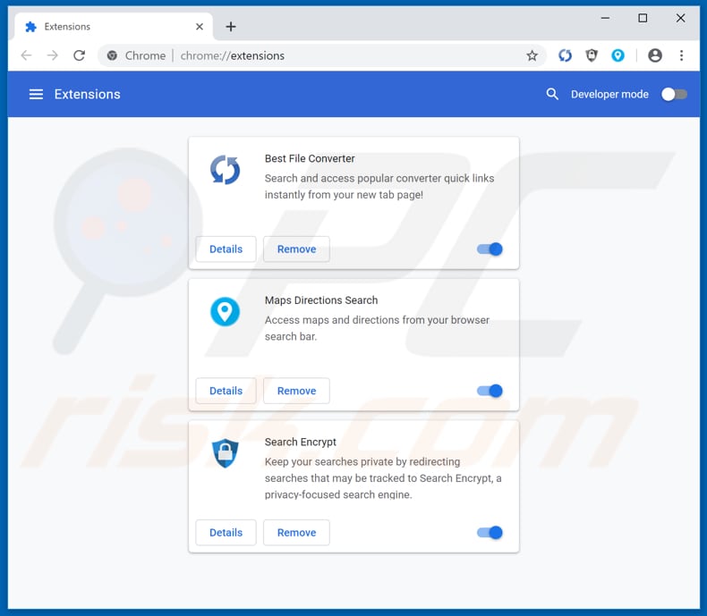 If this problem persists, check installed programs on your computer and extensions, add-ons, and plug-ins on your browser. Remove/uninstall unwanted, unknown and suspicious entries immediately. If your computer is already infected with Best File Converter, we recommend running a scan with Combo Cleaner Antivirus for Windows to automatically eliminate this browser hijacker.