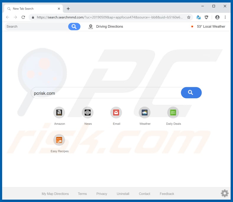Therefore, this search engine is useless, however, people who have MyMapDirections app installed are forced to visit or use it, since the search.searchmmd.com address is opened when a browser/new tab is opened or a search query is entered into the URL bar. That is how this browser hijacker promotes the fake search engine.