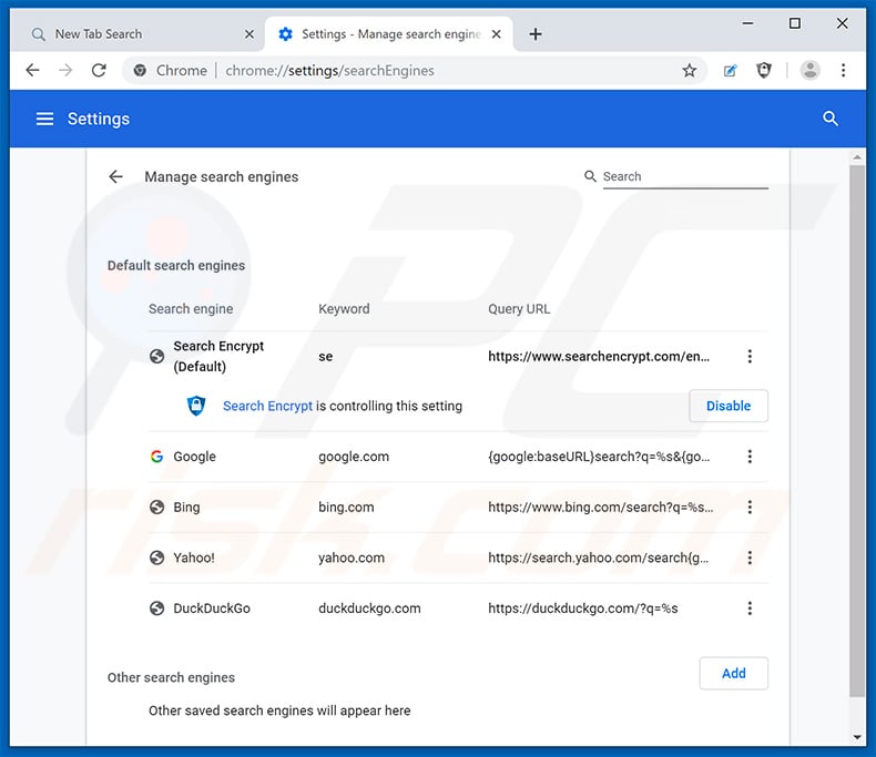 | Symptoms | Manipulated Internet browser settings (homepage, default Internet search engine, new tab settings). Users are forced to visit the hijacker's website and search using their search engines. |