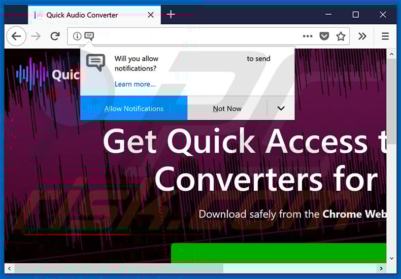 Quick Audio Converter Pro browser hijacker asking for permissions: