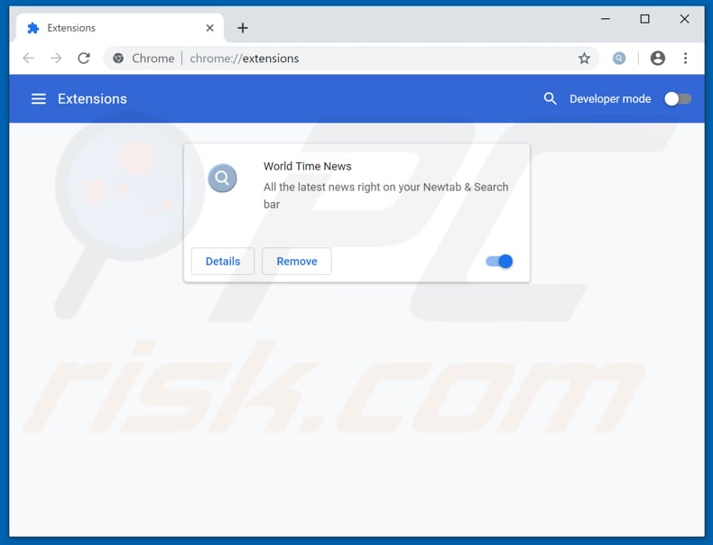 (at the top right corner of Google Chrome), select "More tools" and click "Extensions". Locate "World Time News" and other recently-installed suspicious browser add-ons, and remove them.