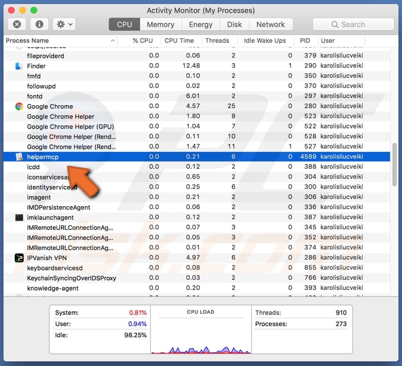 3) Once the previous steps are performed, the process associated with the Helpermcp application will no longer be automatically re-started and you will be able to easily terminate it and remove the remaining application files:
