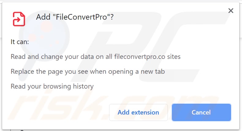 FileConvertPro asks permission to access various data on Chrome: