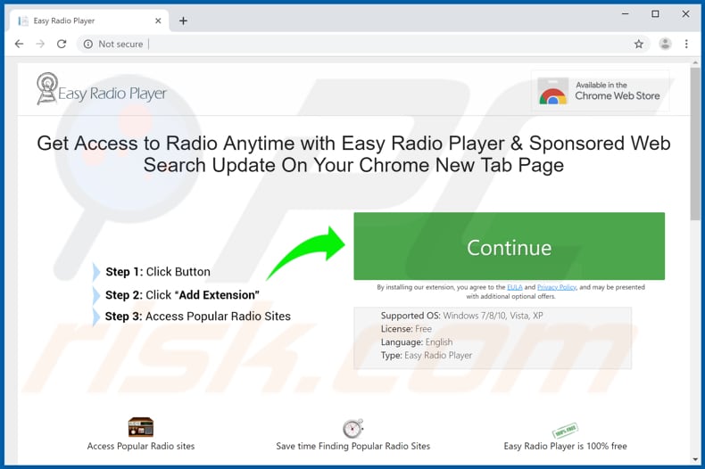 Easy Radio Player is advertised as an app which provides quick access to popular internet radio stations. This may seem to be a legitimate app, however, Easy Radio Player is a browser hijacker designed to collect browsing data and promote a fake search engine (search.easyradioplayertab.com) by changing certain browser settings.