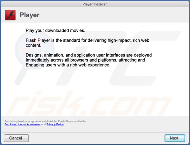 | Promoted Unwanted Application | This page promotes a fake updater of Adobe Flash Player. |