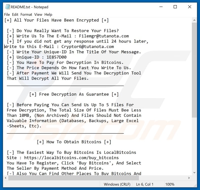 [+] If you did not get any response until 24 hours later,Write to this E-Mail : Cryptor6@tutanota.com