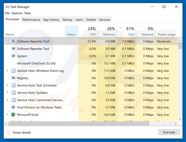Afrodita malicious process running in Task Manager as Software Reporter Tool: