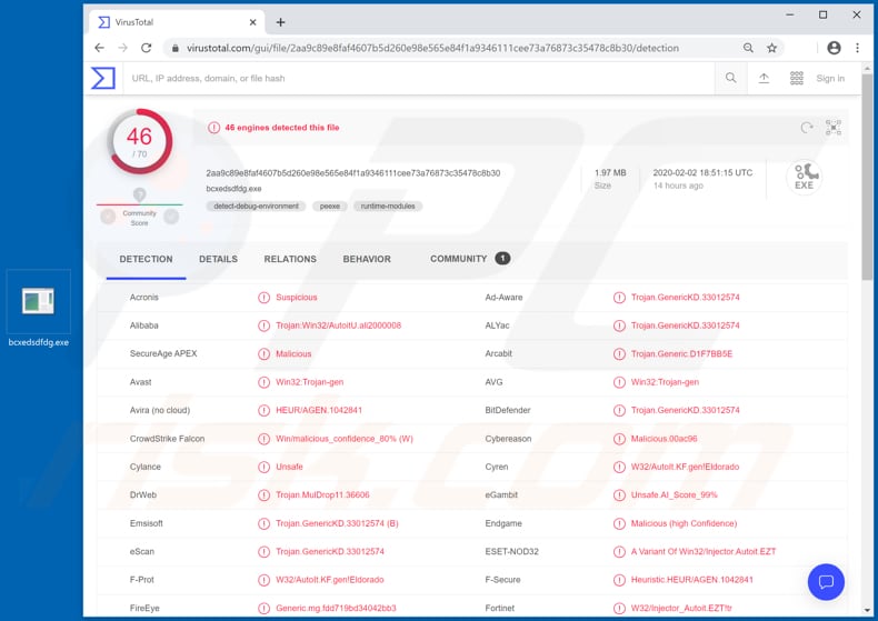 | Malicious Process Name(s) | bcxedsdfdg.exe |