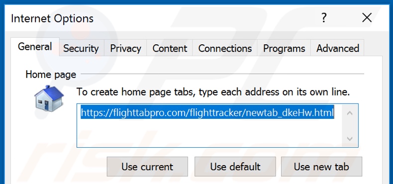 (at the top right corner of Internet Explorer), select "Internet Options", in the opened window remove hxxp://flighttabpro.com and enter your preferred domain, which will open each time you launch Internet Explorer. You can also enter about: blank to open a blank page when you start Internet Explorer.