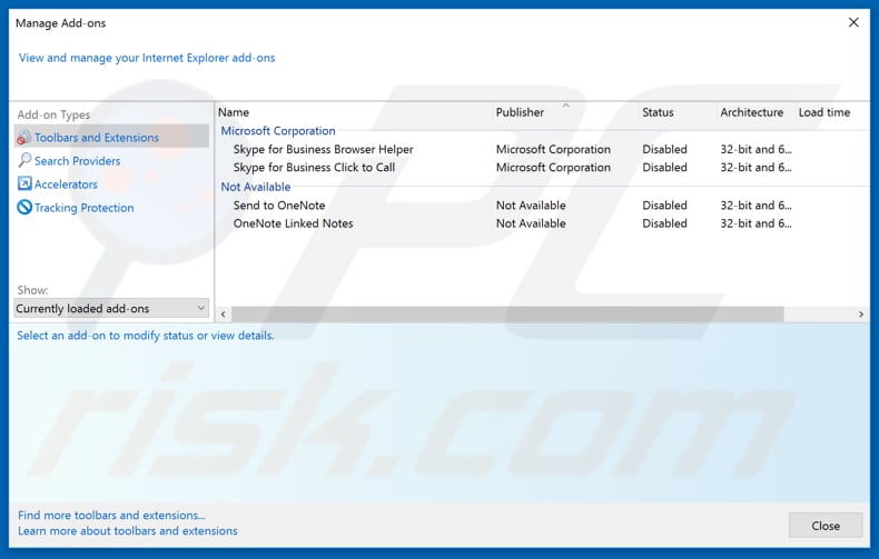 (at the top right corner of Internet Explorer), select "Manage Add-ons". Look for any recently-installed suspicious browser extensions, select these entries and click "Remove".