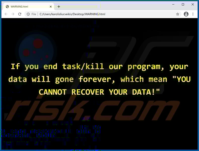 This, however, is rare. In most cases, ransomware infections deliver more direct messages simply stating that data is encrypted and that victims must pay some sort of ransom. Note that ransomware-type infections typically generate messages with different file names (for example, "_readme.txt", "READ-ME.txt", "DECRYPTION_INSTRUCTIONS.txt", "DECRYPT_FILES.html", etc.). Therefore, using the name of a ransom message may seem like a good way to identify the infection. The problem is that most of these names are generic and some infections use the same names, even though the delivered messages are different and the infections themselves are unrelated. Therefore, using the message filename alone can be ineffective and even lead to permanent data loss (for example, by attempting to decrypt data using tools designed for different ransomware infections, users are likely to end up permanently damaging files and decryption will no longer be possible even with the correct tool).