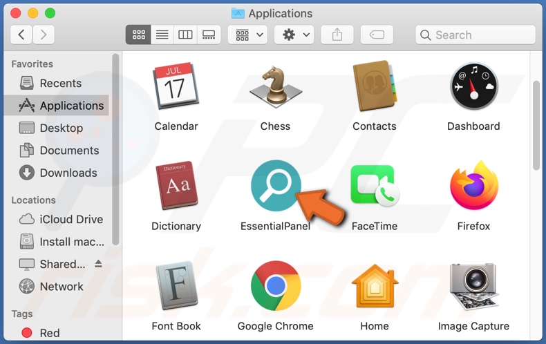 Remove EssentialPanel-related potentially unwanted applications from your "Applications" folder: