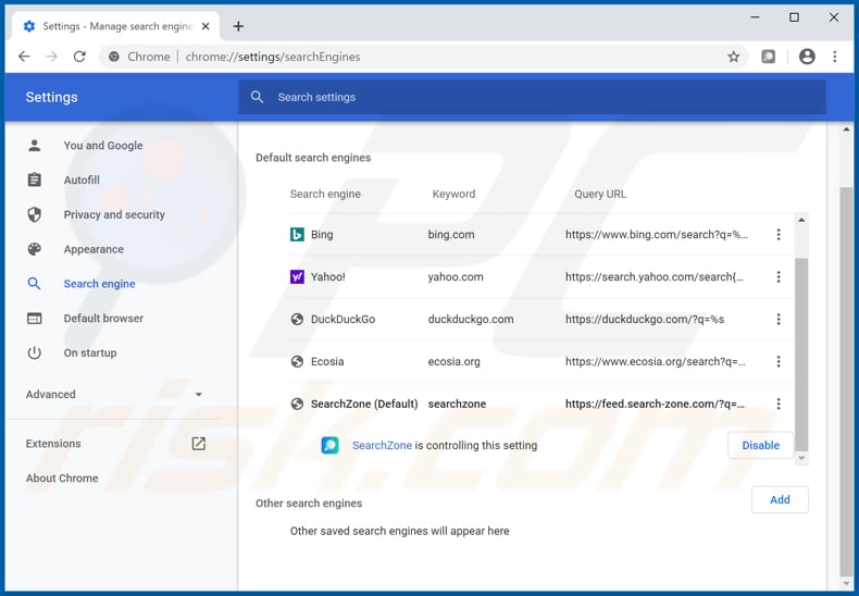 Fake search engines can be removed from browser settings only by uninstalling the browser hijacker. In this case, feed.search-zone.com can be removed or changed by uninstalling SearchZone. Additionally, browser hijackers often gather browsing-related information.