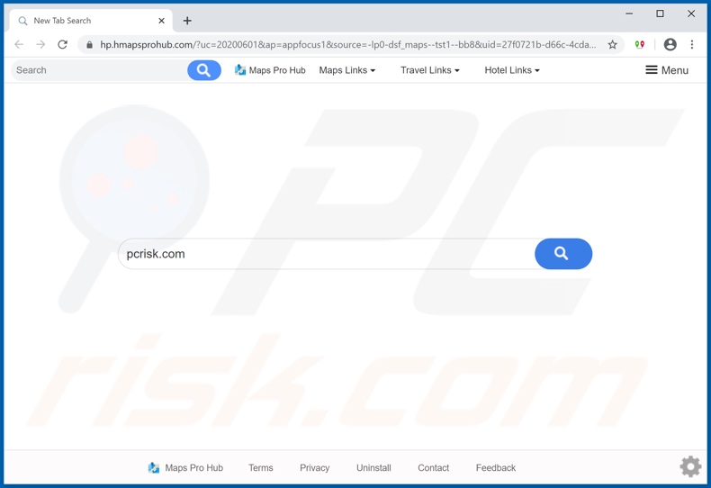 Therefore, with this software installed, each new browser tab/window opened and search query typed into the URL bar redirects to the promoted address. Maps Pro Hub promotes hmapsprohub.com in this manner. Fake search engines are seldom capable of generating unique results, and so they redirect to (or cause redirection chains leading to) genuine sites.