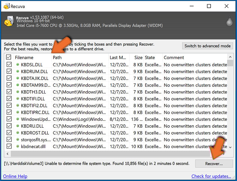 Wait for Recuva to complete the scan. The scanning duration depends on the volume of files (both in quantity and size) that you are scanning (for example, several hundred gigabytes could take over an hour to scan). Therefore, be patient during the scanning process. We also advise against modifying or deleting existing files, since this might interfere with the scan. If you add additional data (for example, downloading files/content) while scanning, this will prolong the process: